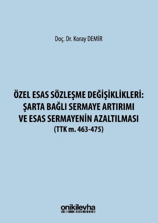 Demir, K. (2020). Özel Esas Sözleşme Değişiklikleri: Şarta Bağlı Sermaye Artırımı ve Esas Sermayenin Azaltılması (TTK m. 463-475). On İki Levha Yayıncılık.