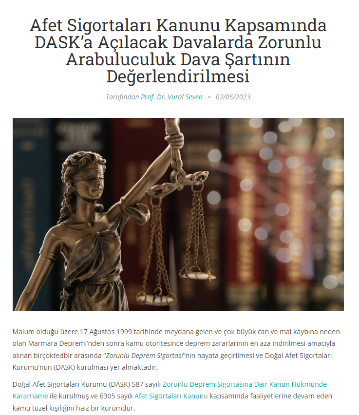 Afet sigortaları kanunu kapsamında DASK’a açılacak davalarda zorunlu arabuluculuk dava şartının değerlendirilmesi
